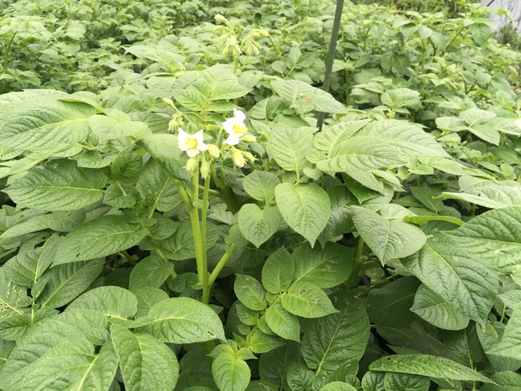 じゃがいもの花芽が出始めました。昨日から花芽摘みをはじめました。これもにんにくと同じ考えで行っています。今年はじゃがいもの勢いが良いように思われます。植えている品種は『出島』ですが初めて植えた10株程の品種『カルビー』がどんな『いも』になるのか楽しみです。