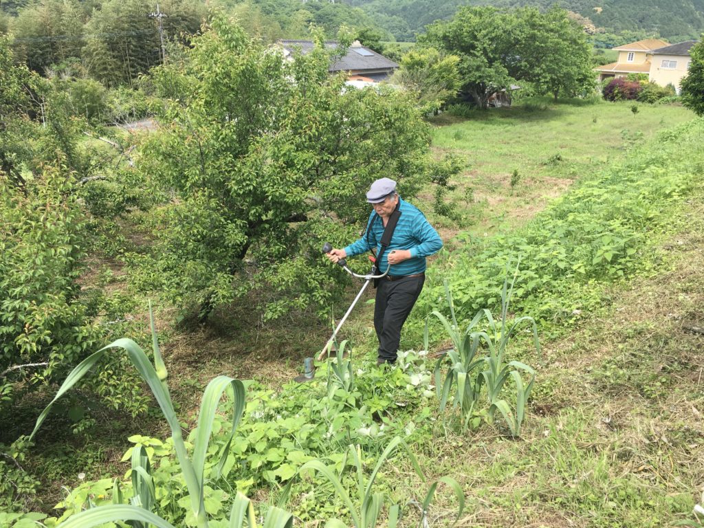 雨の降らない日は毎日草刈り作業があります。草が伸びた場所は刈るようにしています。